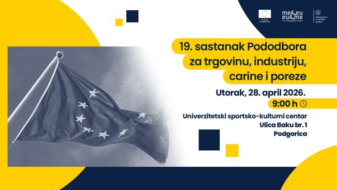 Devetnaesti sastanak Pododbora za trgovinu, industriju, carine i poreze između EU i Crne Gore, održaće se u hibridnom formatu u Podgorici, u Univerzitetskom sportsko-kulturnom centru – Multimedijalna sala (ulica Baku broj 1).