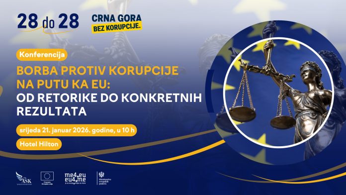 Ministarstvo evropskih poslova i Agencija za sprečavanje korupcije, organizuju u srijedu, 21. januara 2026. godine, Konferenciju „Borba protiv korupcije na putu ka EU: od retorike do konkretnih rezultata”.